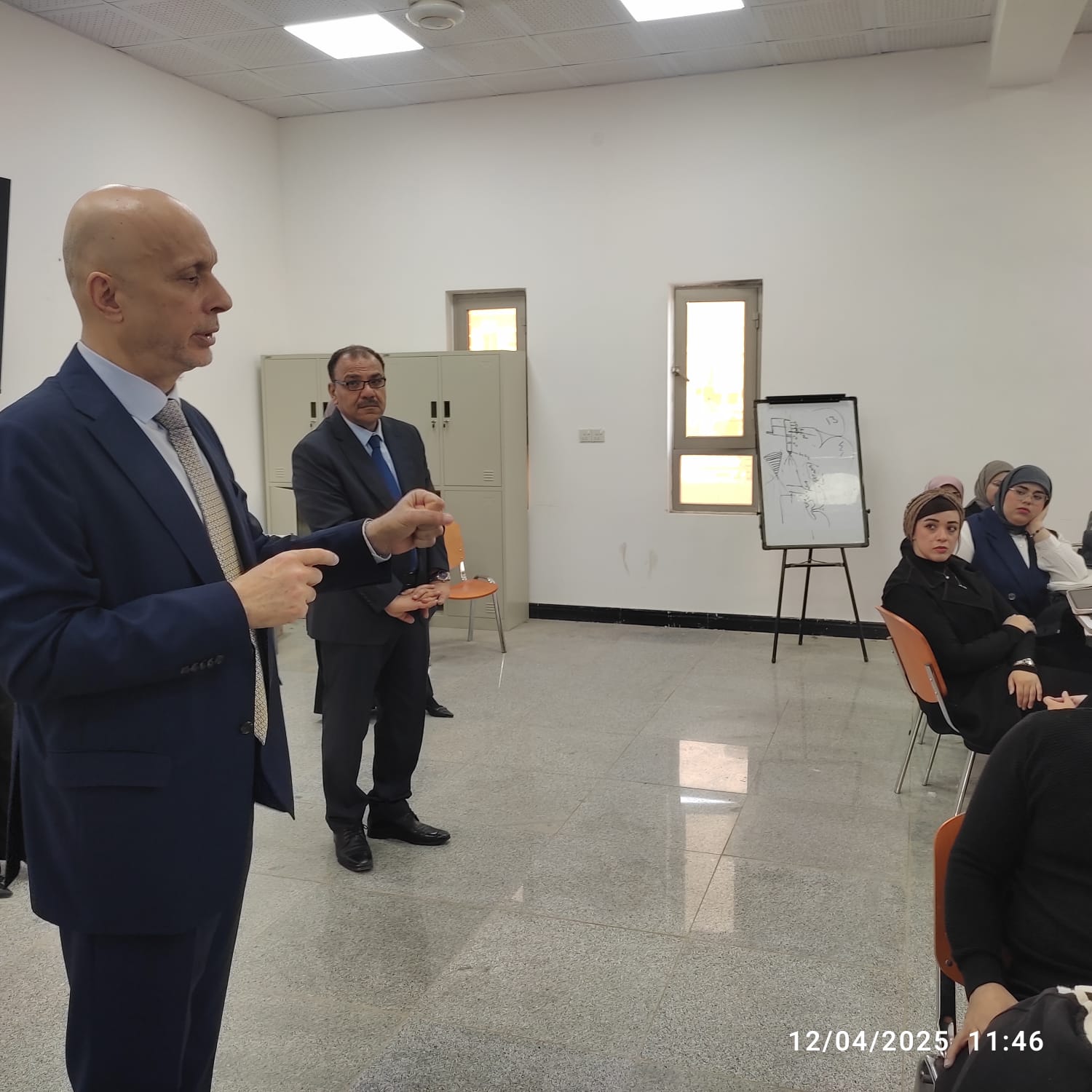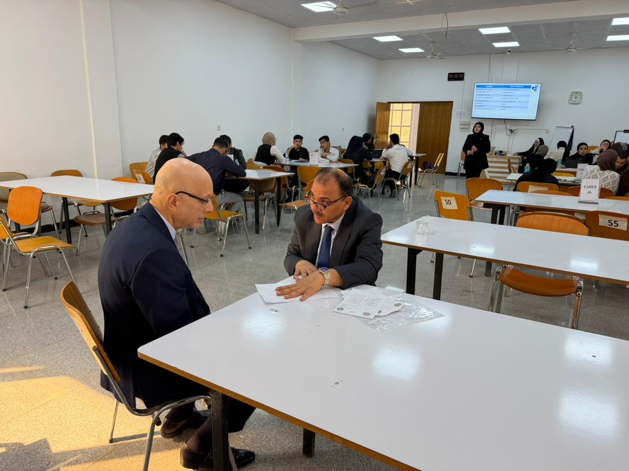 كما حضر الأستاذ الدكتور محمد الأزري عددًا من المحاضرات التي ألقاها نخبة من تدريسيي الكلية، واطّلع على أساليب إدارة الجلسات التعليمية وفق نموذج TBL، الذي يركز على تعزيز العمل الجماعي، وتطوير التفكير النقدي، وتحفيز الطلبة على التفاعل والمشاركة الفاعلة في العملية التعليمية.